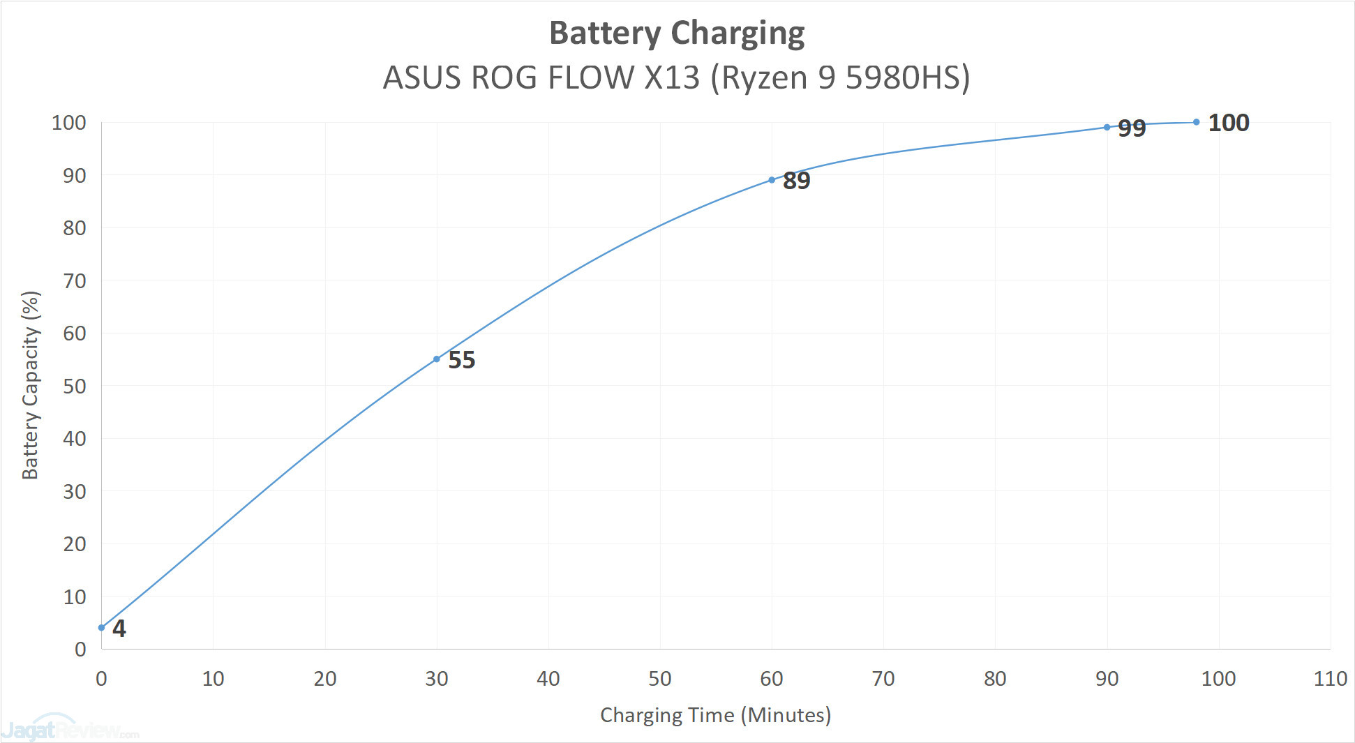 Battery Charging merupakan salah satu highlight dari ROG FLOW X13, dengan hasil berikut ini :