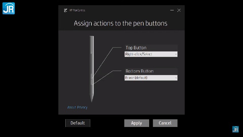 Fungsi keseluruhan Stylus langsung aktif, tanpa memerlukan konektivitas tambahan seperti Bluetooth. Fungsi tombol dapat dikostumisasi dengan menggunakan Software HP Pen Control