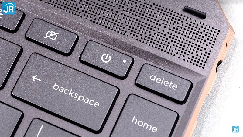 Tombol Power menyatu dengan Keyboard dengan posisi disebelah atas tombol Backspace. Untungnya, saat kami coba tekan beberapa kali, Laptop tetap dalam kondisi menyala dan tidak masuk ke kondisi Sleep. Laptop baru masuk kondisi Sleep jika tombol ditahan beberapa detik.