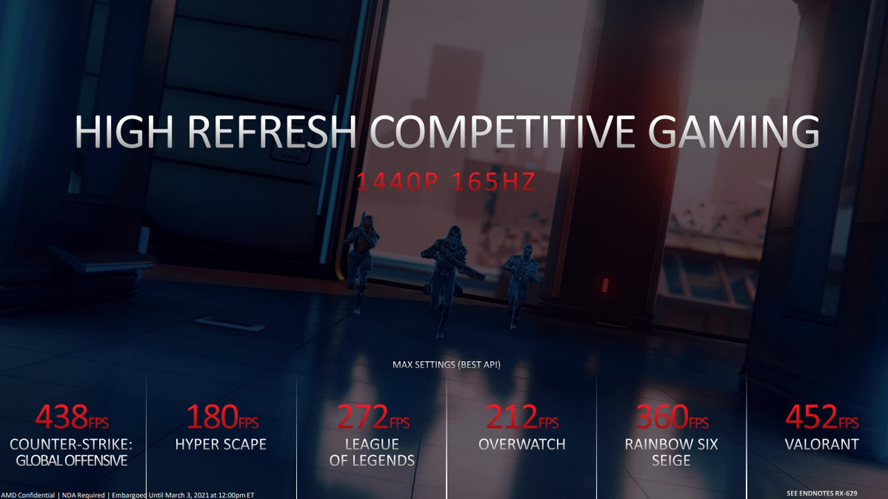 AMD terlihat memposisikan card ini untuk bersaing dengan NVIDIA GeForce RTX 3070 pada skenario rasterization (non-Ray tracing).
