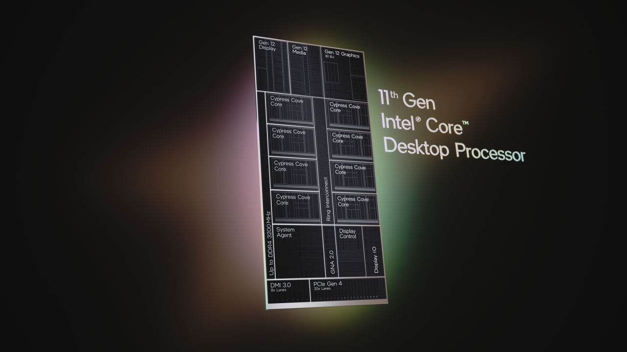 Perubahan besar berikutnya adalah penggunaan integrated graphics(IGP) dengan arsitektur baru yang bernama ‘Gen12‘. Arsitektur ini serupa dengan yang digunakan pada IGP CPU mobile Tiger Lake, yakni Intel Iris Xe Graphics. Bedanya, kalau versi Iris Xe pada notebook memiliki 80-96 EU (Execution Units), versi desktop Rocket Lake hanya memiliki 32 EU, atau kurang lebih setara dengan 256 Shader Unit.