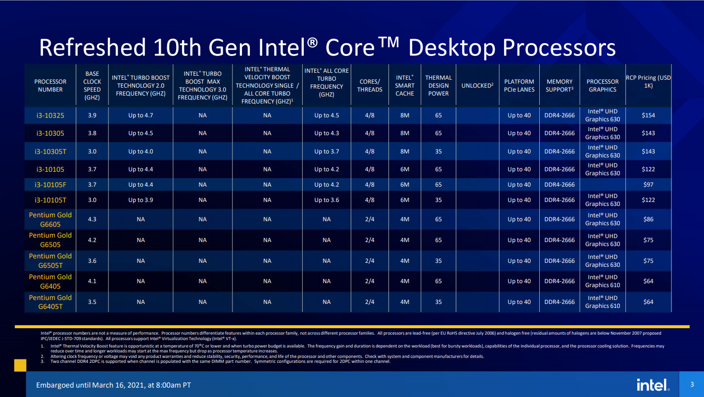 Intel Core i3 & Pentium – Core 10th Gen Refresh