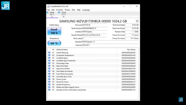 Fitur Resizable BAR telah aktif di laptop ini. Fitur dapat diaktifkan melalui menu Re-size BAR support pada BIOS. Resizable BAR memungkinkan prosesor untuk dapat mengakses penuh seluruh kapasitas Memory pada GPU Discrete. Fitur ini diklaim mampu meningkatkan performa di skenario Gaming pada game tertentu