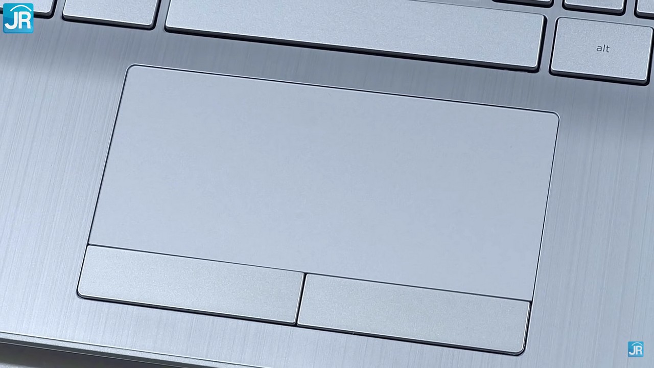 Posisi Touchpad sejajar dengan tombol Spacebar. Ini membuat pengguna akan mengetik lebih nyaman karena telapak tangan tidak mudah masuk ke area TouchPad. Touchpad juga dilengkapi tombol khusus untuk klik kanan dan kiri, dan sudah menggunakan Windows Precision Driver.