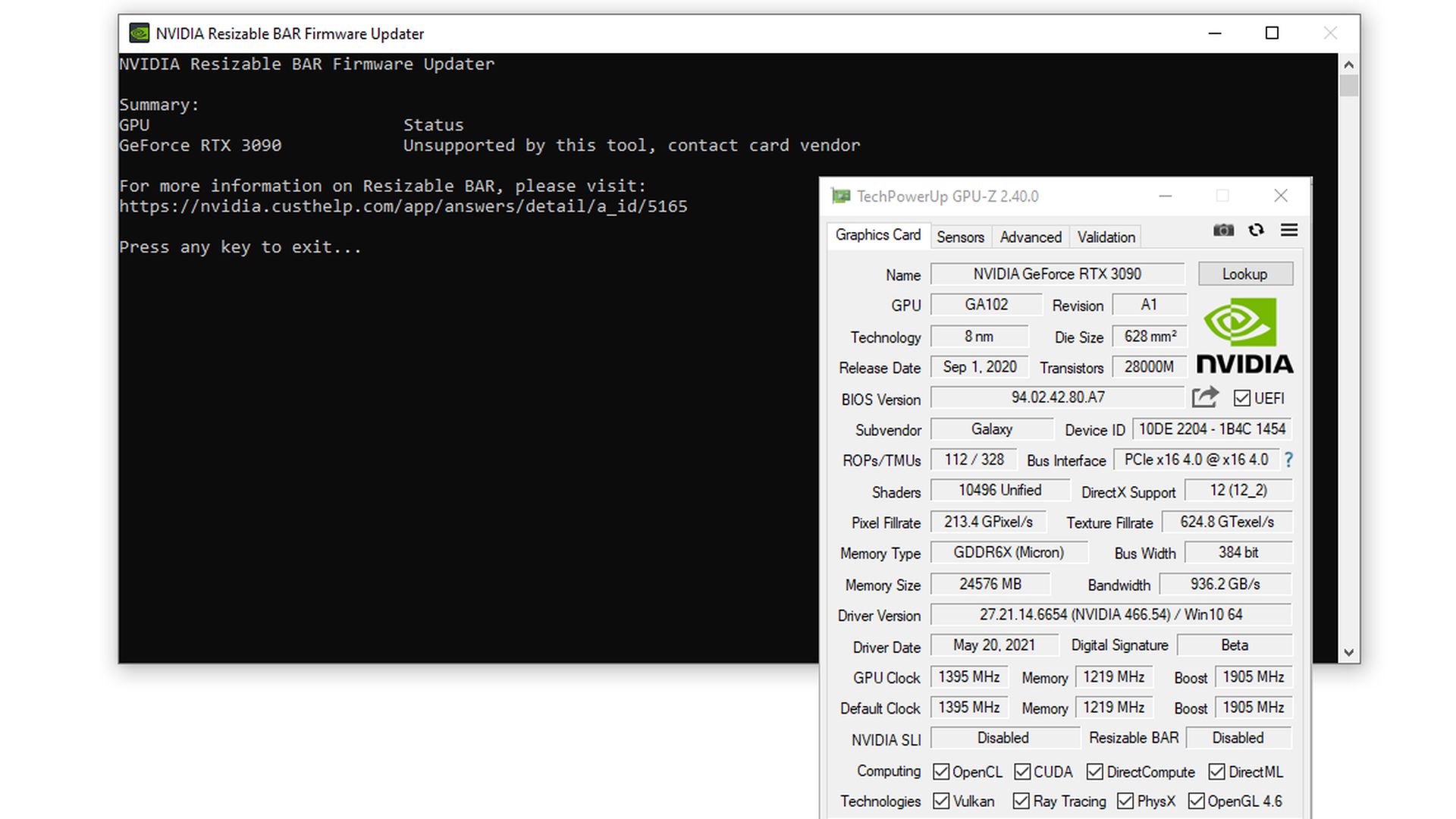 Ini terjadi karena kami tidak berhasil mmengupdate BIOS resizable BAR pada 3090 HOF kami, yang mungkin terjadi karena tool updaternya tidak mengenali GPU kami.