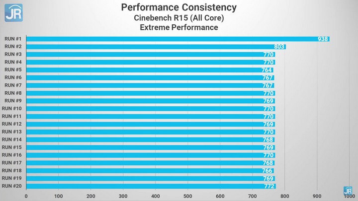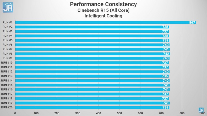 - Sementara untuk Sustain Performance, skor dapat dipertahankan dikisaran 730-740 poin saat mode Intelligent Cooling dan masih bisa naik sedikit ke 760-770 poin di mode Extreme Performance. Lagi-lagi Sustain Performance yang tergolong oke untuk jenis Laptop seperti ini.