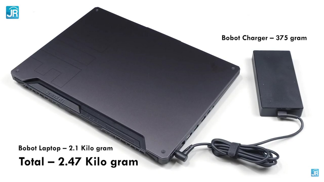 Seperti laptop gaming pada umumnya, laptop ini memiliki bobot yang cukup standar di 2,1 Kg. Ditambah dengan adaptor charger dengan bobot 375 gram, total yang akan diangkut pengguna yaitu sebesar 2,47 kg.