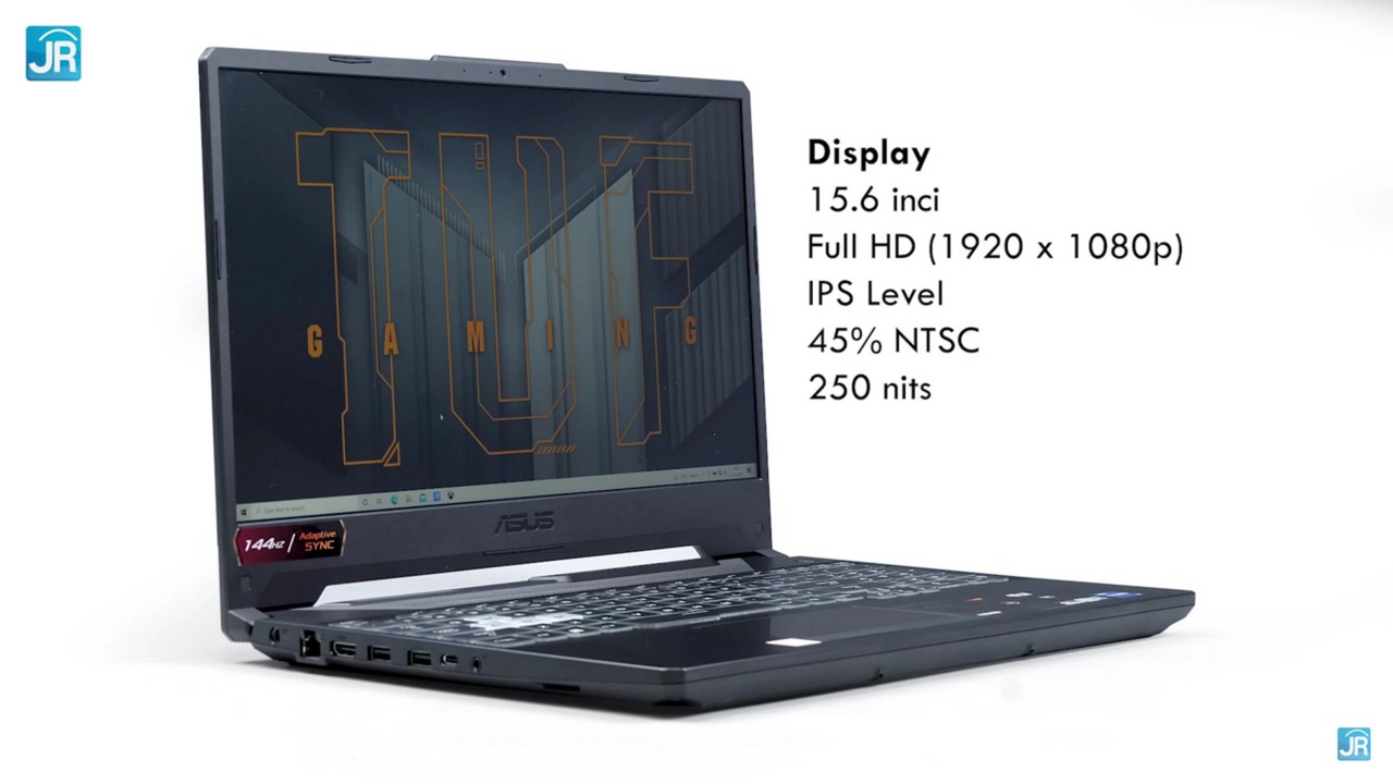 Beralih ke Display, perangkat ini memiliki layar berukuran 15.6 inci dengan resolusi Full HD (1920 x 1080p). Panel yang digunakan yaitu 45% NTSC dengan tingkat kecerahan 250 nits. Layar ini juga sudah mengusung refresh rate yang tinggi untuk sebuah laptop gaming yaitu 144Hz.