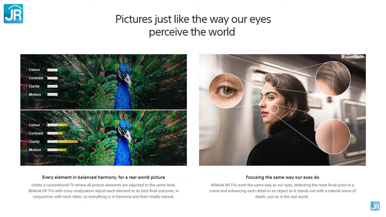 - XR Picture; memanfaatkan AI, dimana TV Bravia XR yang dilengkapi Cognitive Processor XR bisa menampilkan gambar yang dalam, natural, dan nyata.