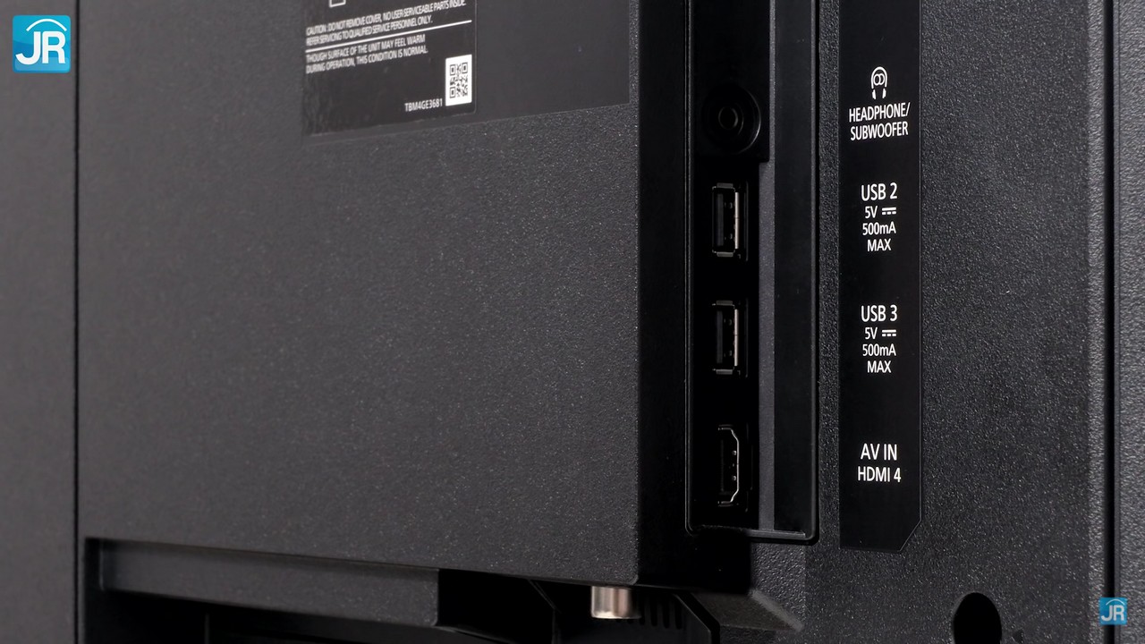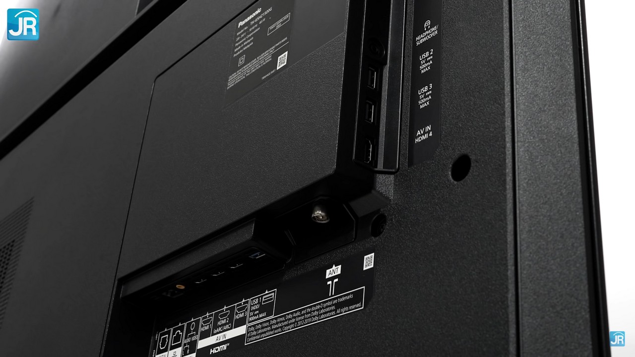 Konektor-konektor I/O TV ini juga ditempatkan di sisi belakang, arahnya menghadap ke kiri dan bawah. Untuk konektor yang menghadap ke bawah, Jika diletakkan di atas meja yang menempel ke dinding, membuat kita harus meraba deretan konektor terlebih dahulu untuk mencari posisi konektor yang tengah kita butuhkan. Tapi, konektor-konektor ini sangat berguna jika TV ini ditempelkan ke dinding. Karena, mudah mengaksesnya dari sisi bawah.
