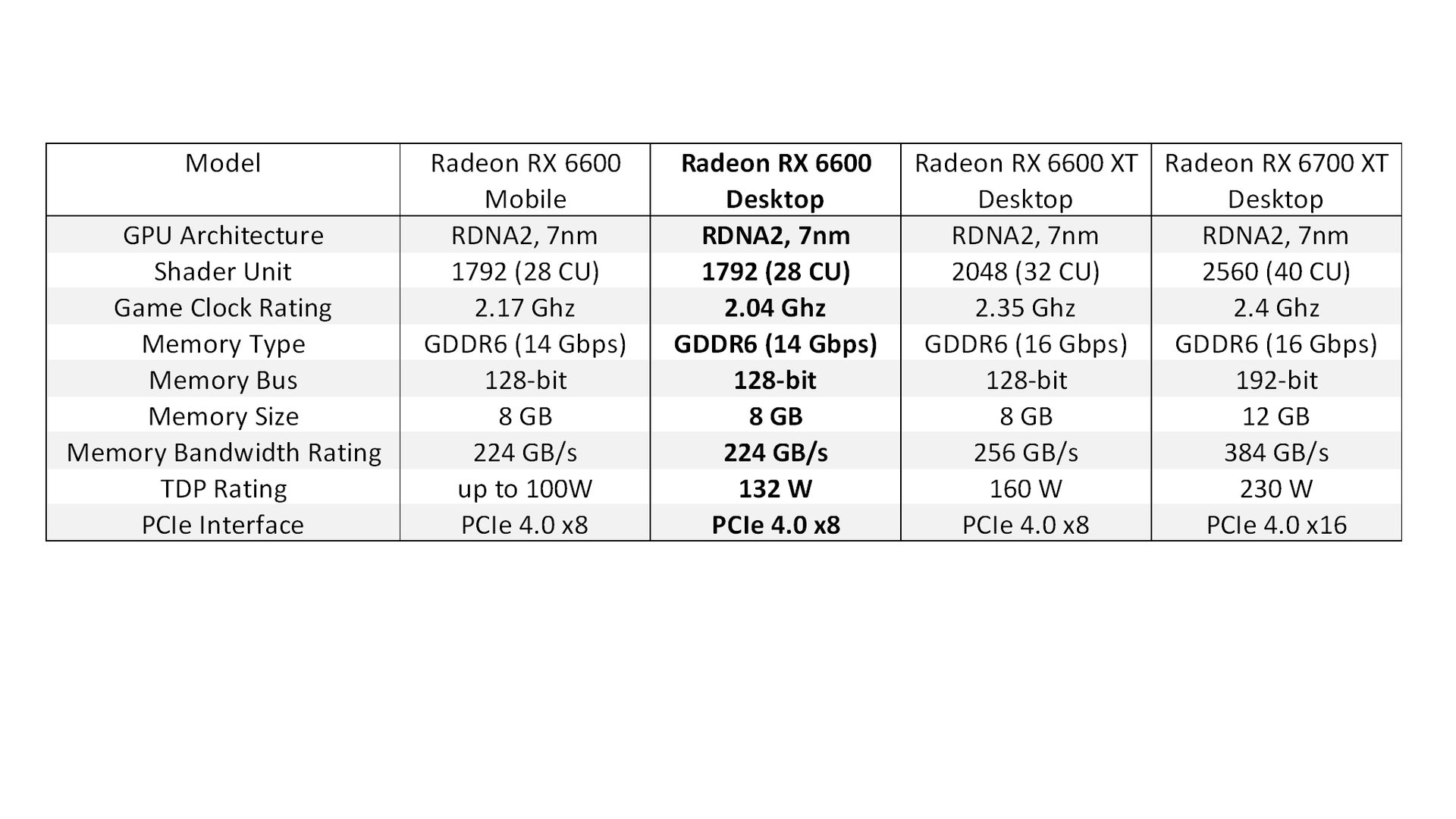 Seperti halnya RX 6000-series lain-nya, RX 6600 menggunakan arsitektur RDNA2, yang berarti GPU ini datang dengan sejumlah karakteristik serupa RX 6800- / 6700-series, seperti :