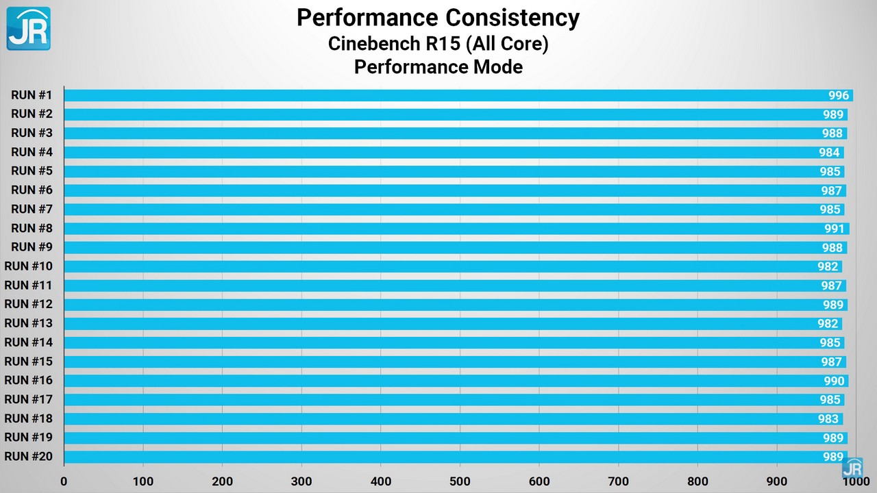 - Untuk skor tertinggi, pada mode Balanced ada di 999 poin sementara di mode Performance adalah 996 poin. Ini skor yang tergolong normal untuk tipe prosesor seperti ini