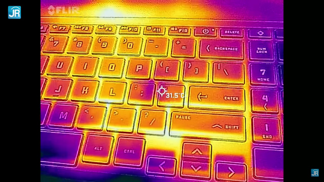 Kami juga melakukan pengamatan suhu permukaan dan suhu kerja saat memainkan Assassin’s Creed Valhalla selama 30 menit, terlihat bahwa: