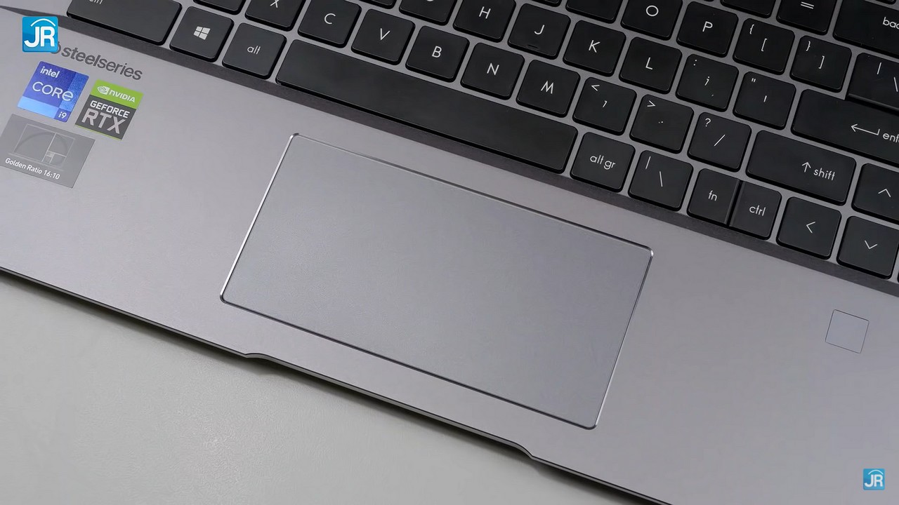 Beralih ke bagian keyboard, sangat menarik karena laptop yang ditujukan untuk konten kreator ini menggunakan Keyboard dari produsen Peripheral Gaming, SteelSeries.