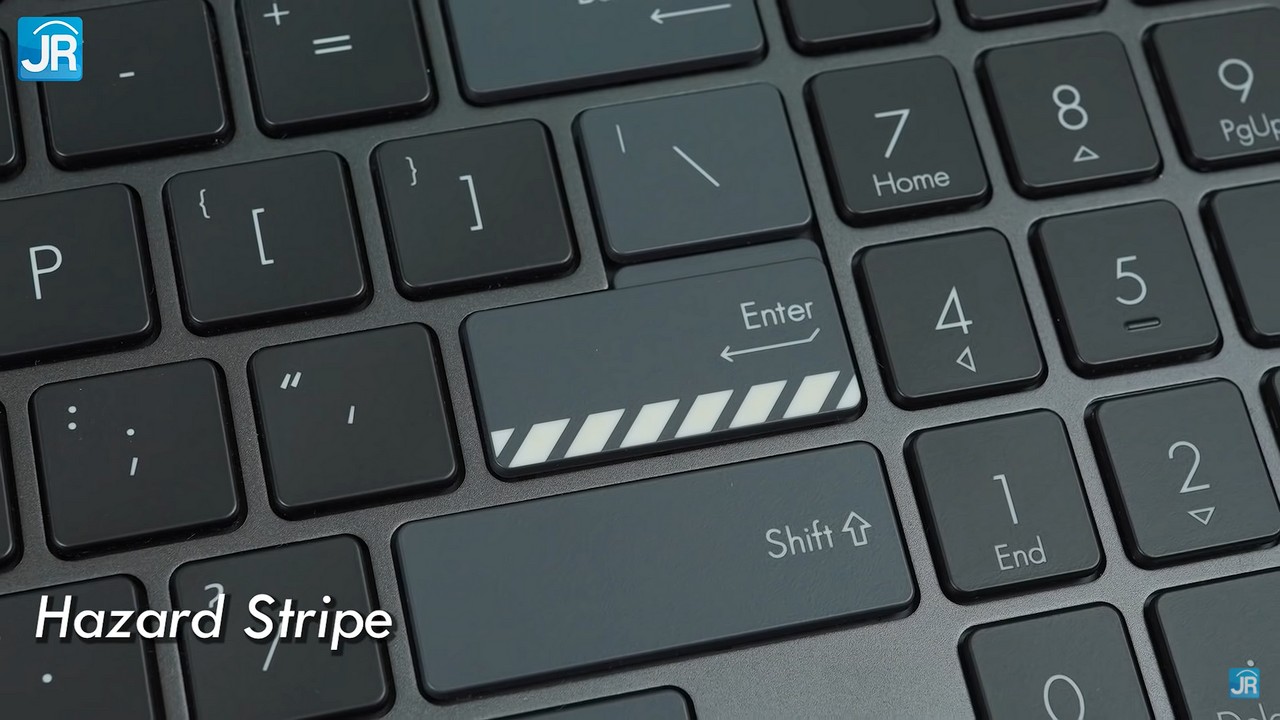 Menurut ASUS, Laptop ini mengusung tema Industrial yang membuatnya tampak seperti Rugged-Laptop dengan ornamen “Hazard Stripe” di area punggung layar dan tombol Enter. Bodi Laptop ini pun menggunakan Weave Coating yang diklaim membuat sidik jari maupun noda sulit menempel.