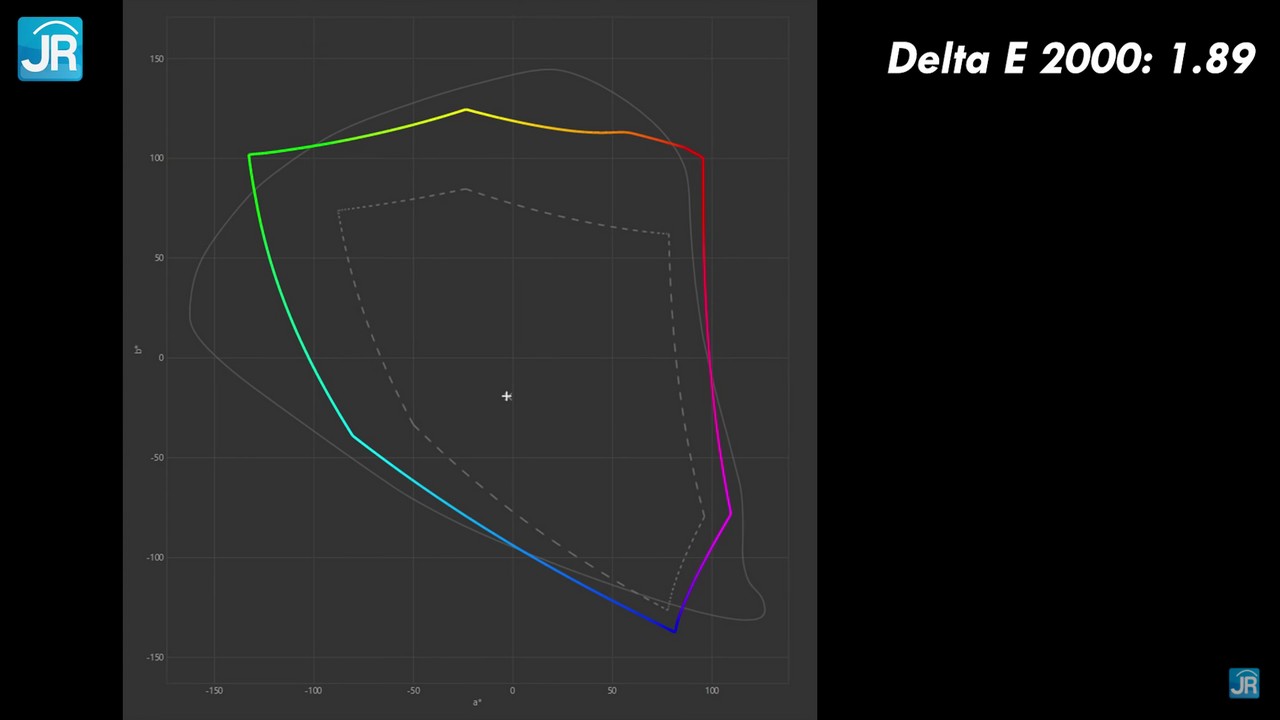 - Gamut Coverage di 98.9% DCI-P3 dan Gamut Volume di 122% DCI-P3
