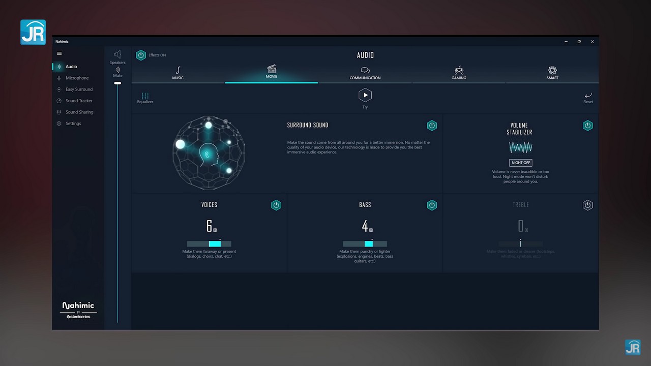 Di aspek audionya laptop ini dilengkapi dua buah Speaker dengan arah keluaran suara ke alas Laptop. Seperti di Legion, pada Laptop ini disertakan Software Nahimic untuk mengatur profil Audio sekaligus mengatifkan fitur Sound Tracker dan Surround Sound. Suara yang dihasilkan ternyata cukup lantang dan lumayan oke kualitasnya untuk kelas harganya.