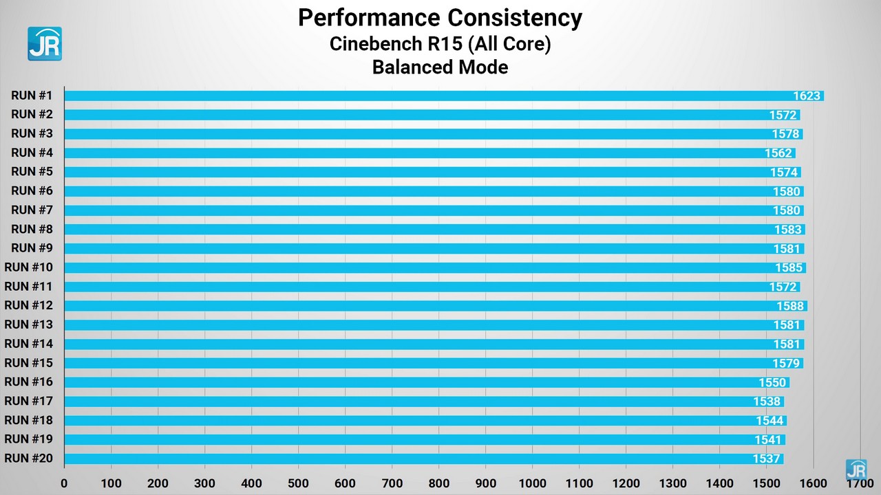 - Sementara untuk skor yang dapat dipertahankan ada dikisaran 1530-1580 poin di mode Balanced dan juga mengalami sedikit kenaikan ke 1570-1590 poin di mode Performance.