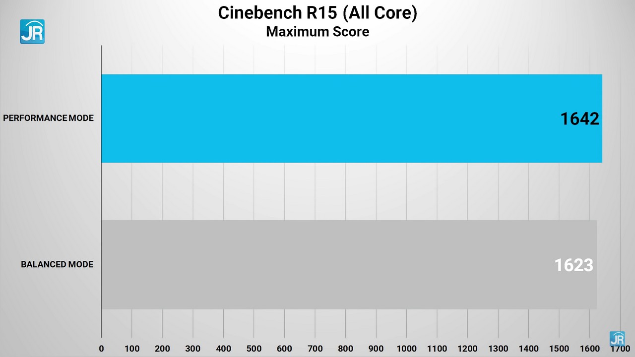 - Pada mode Balanced, skor tertinggi yang dicapai adalah 1623 poin dan naik sedikit ke 1642 poin di mode Performance