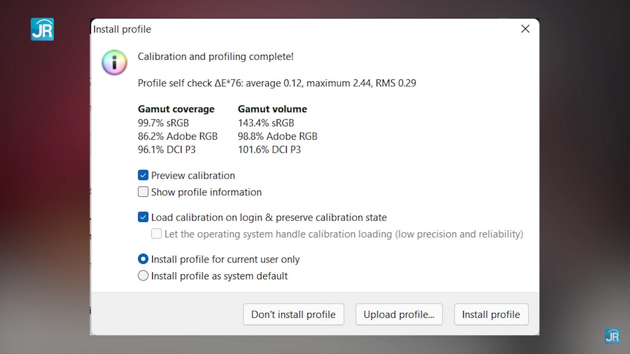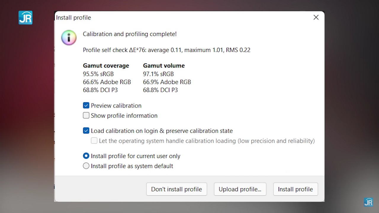 Berdasarkan pengujian kami, saat kami uji di mode default (sRGB), hasillnya yaitu: