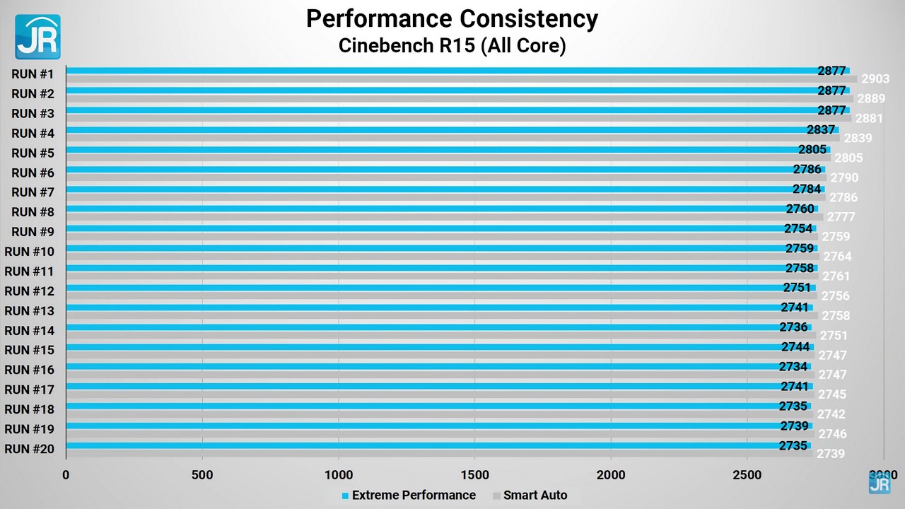 - Sementara itu untuk skor yang dapat dipertahankan ternyata mirip-mirip saja antara mode Smart Auto ataupun Extreme Performance di 2700-2800 poin