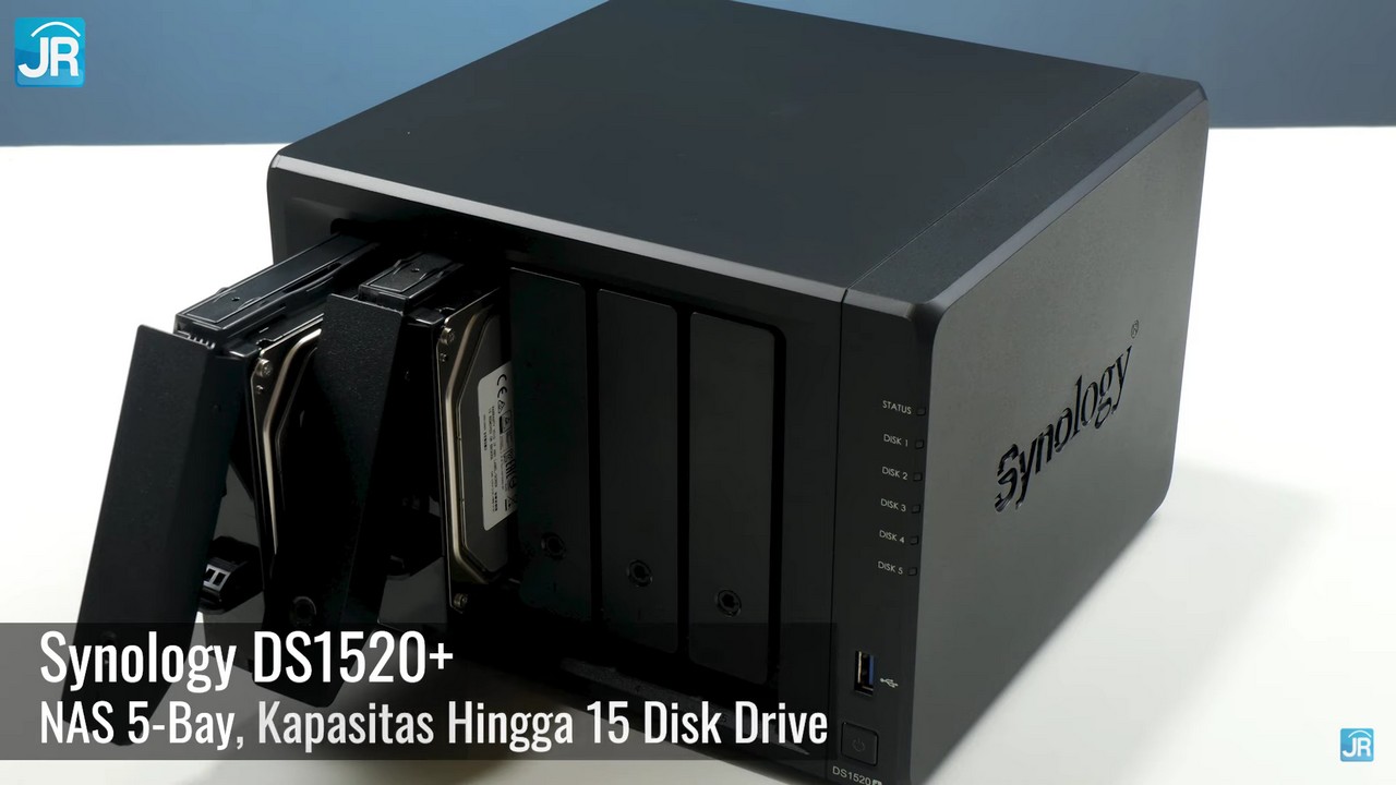 Sebagai produk seri “Plus” dari Synology, NAS ini dibekali dengan kemampuan proteksi data dan manajemen penggunaan tingkat lanjut. Serta, kapasitas user-nya tentu saja banyak. Angka “15” menunjukkan kalau NAS ini bisa menampung total hingga 15 disk drive. Storage bay-nya memang hanya ada 5.