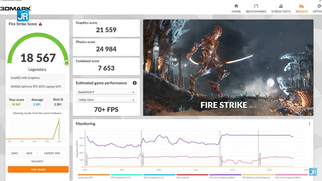 - 3DMark Fire Strike (DirectX 11) Graphic Score – 21559 poin