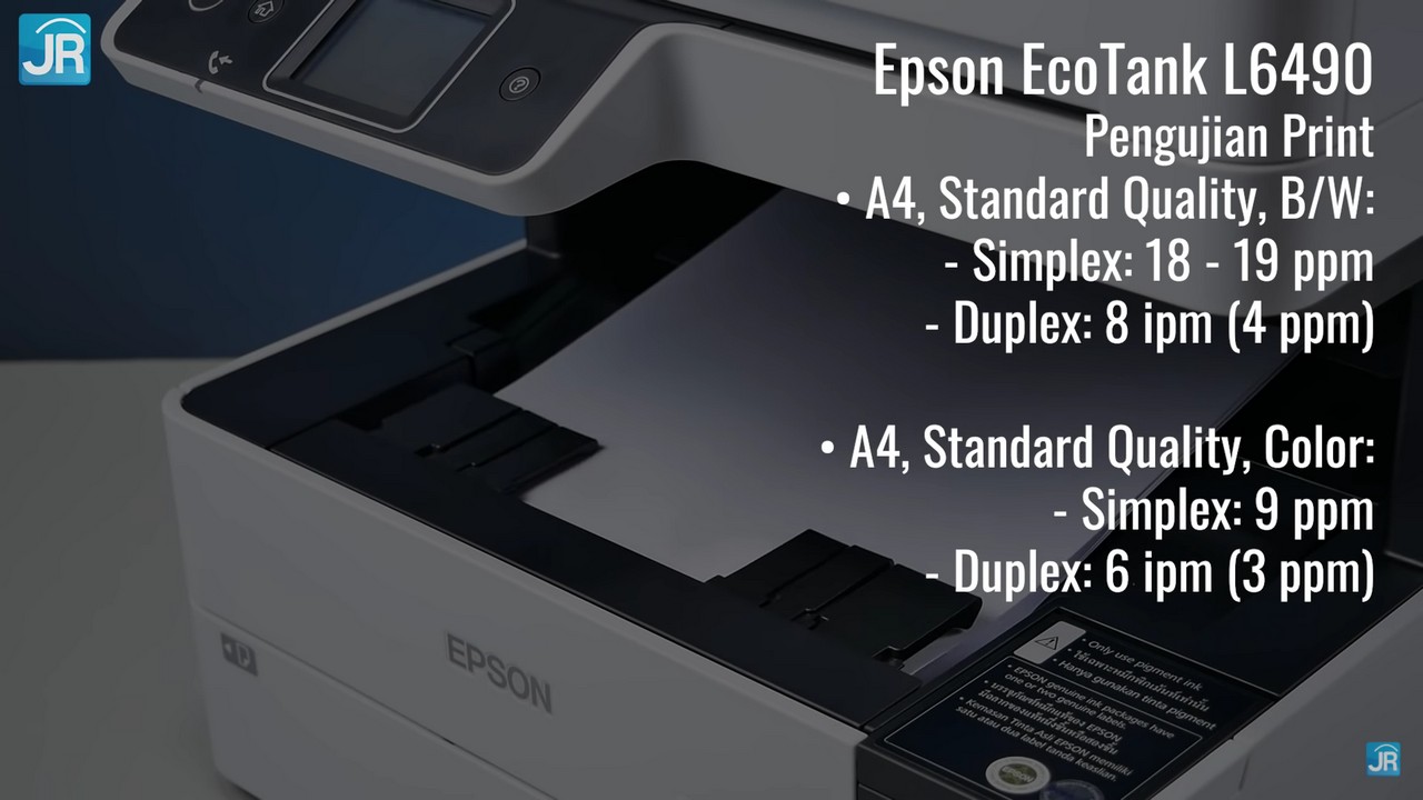 Pengujian ini menggunakan prosedur Jagat Review sendiri, menggunakan kertas A4 dengan komposisi yang dibuat semirip mungkin dengan standar yang banyak digunakan untuk tes printer secara resmi.