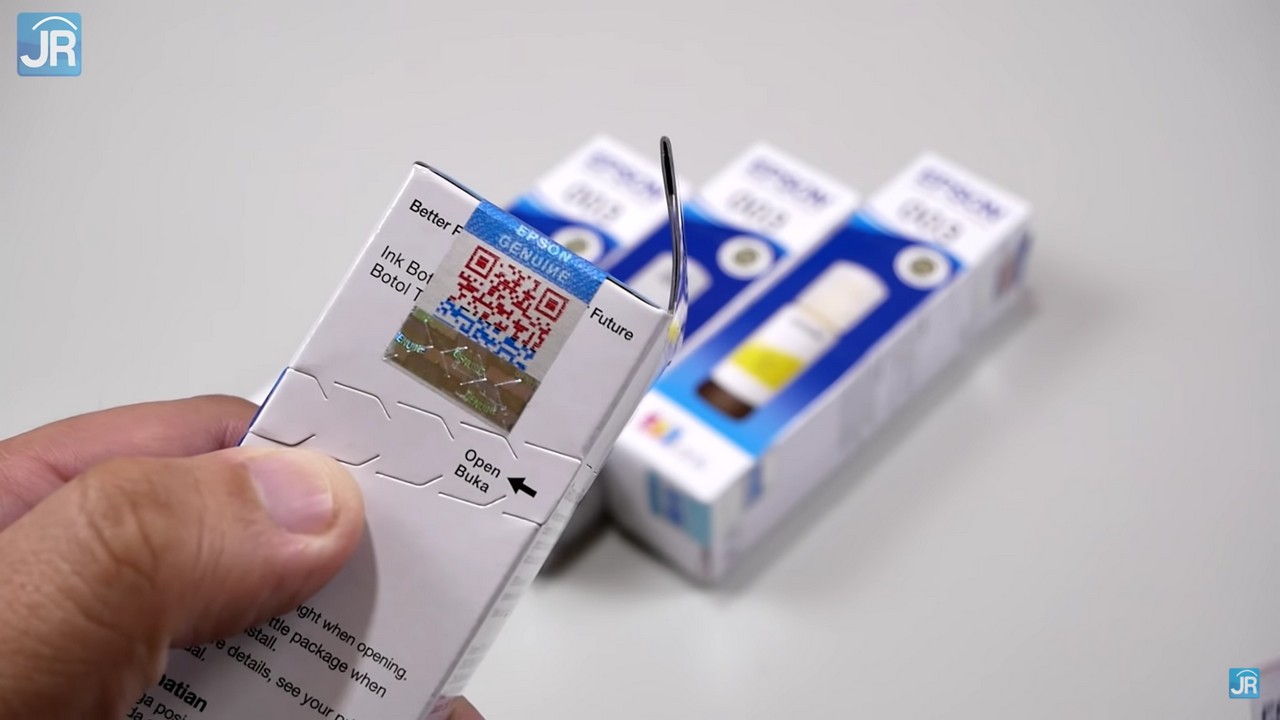 Epson Indonesia sudah menyediakan caranya, yaitu dari app Epson Genuine. App ini tersedia di Google Play Store dan Apple AppStore. Di kemasan consumable, cari stiker QR Code-nya. Stiker QR Code ini bisa berupa hologram, bisa juga colour QR Code dengan dua warna seperti ini.