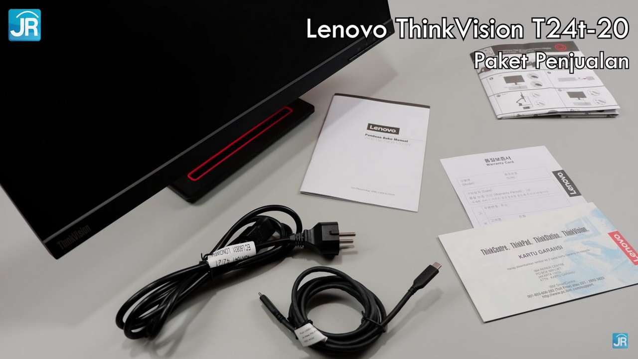 Monitor Lenovo ThinkVision T24t-20 memiliki layar berukuran 23.8” dengan material bodi terbuat dari plastik, namun terasa kokoh dan solid. Desain base standnya sendiri berbentuk kotak dengan bentuk tiang penyangga monitor yang unik.