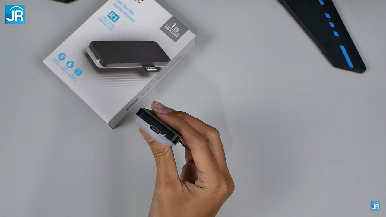 Klevv R1 memiliki desain yang ramping, dengan dimensi panjang 7 cm, lebar 8 cm dan tebal 21 cm. Sementara untuk bobot, SSD ini sekitar 66.5 gram. Jadi, ini memang SSD External dengan desain yang ramping dan ringan.
