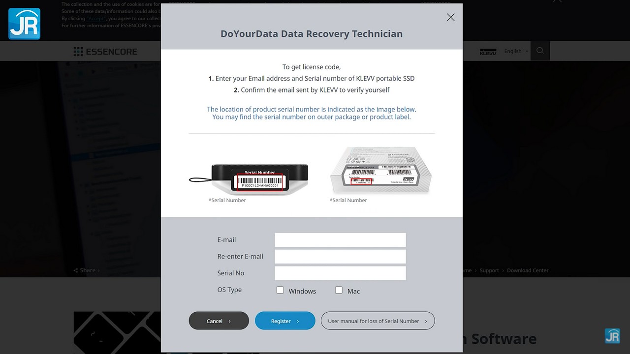 Nah, untuk mendapatkan software ini, pengguna wajib memasukkan serial number SSD External Klevv R1 sebelum melakukan proses download.