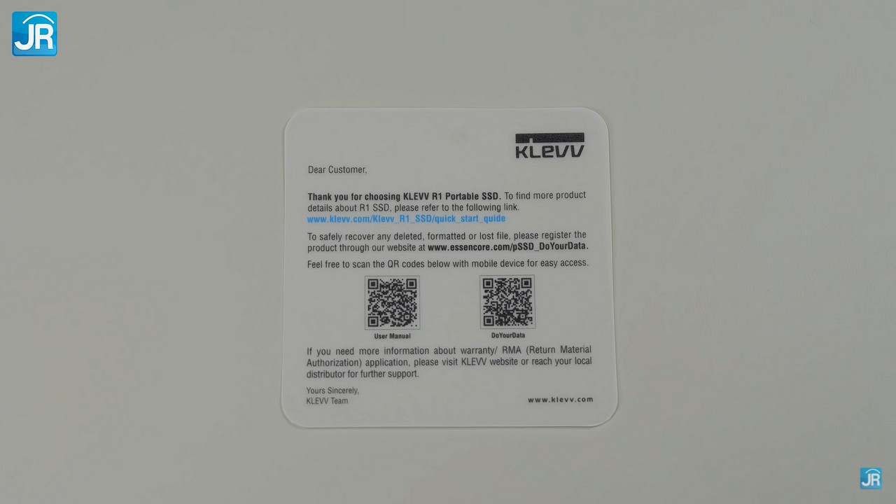 - Kartu ucapan terima kasih dari Klevv yang berisikan link QR Code untuk user manual & software DoYourData.