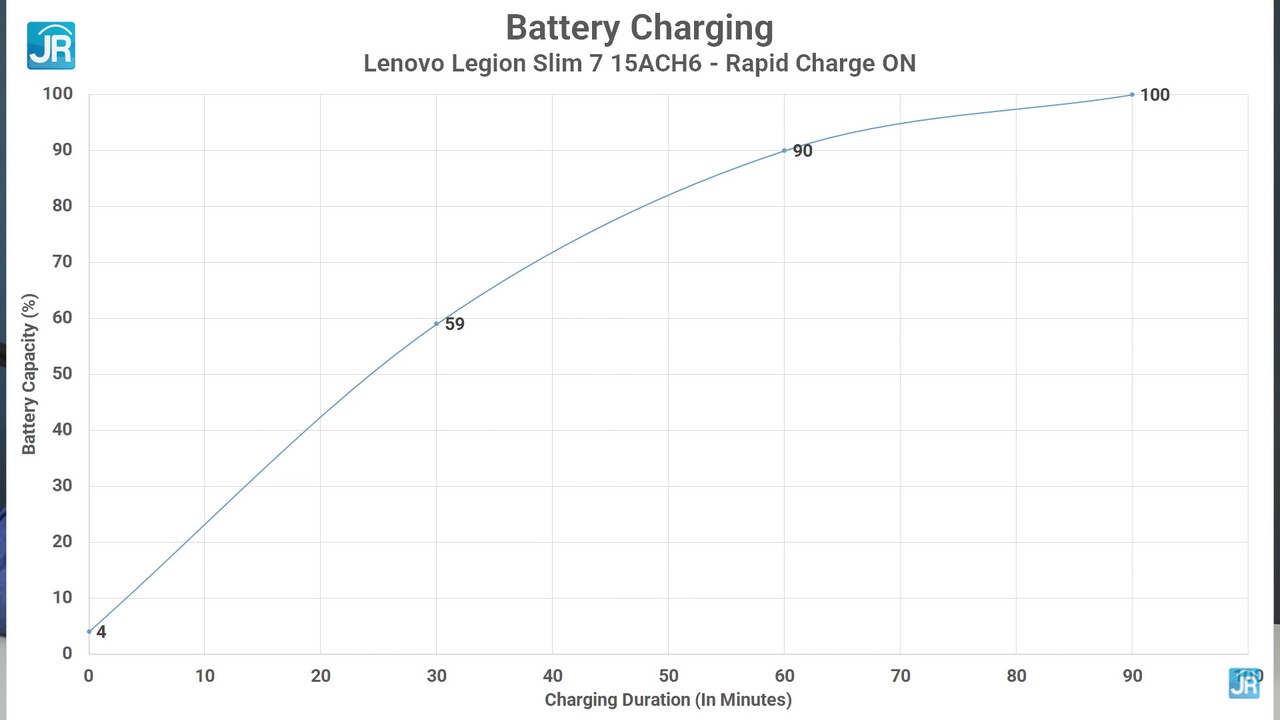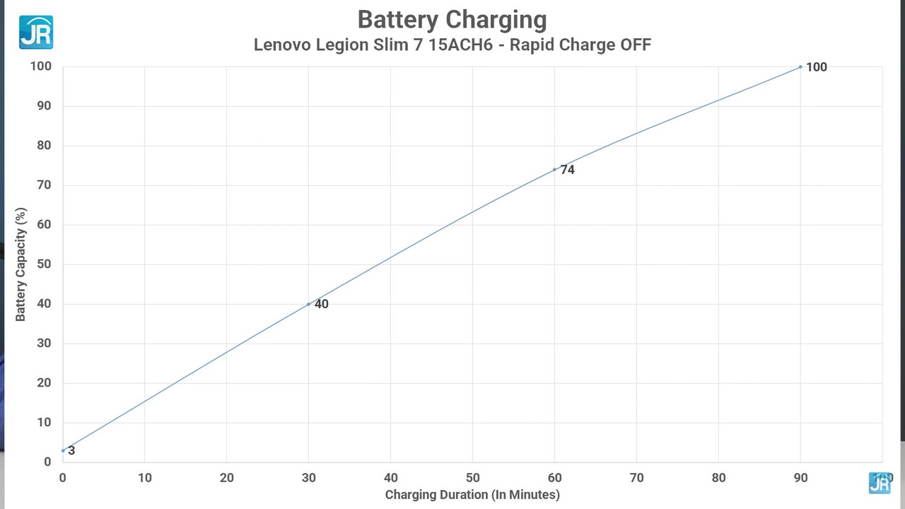 Untuk pengujian baterai dari Lenovo Legion Slim 7 15ACH6, hasilnya adalah sebagai berikut.