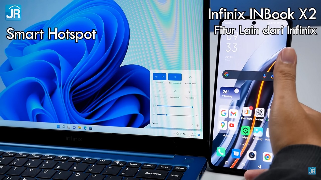 - Smart Hotspot: bila laptop dihubungkan ke hotspot dari beberapa tipe smartphone Infinix, kita tidak perlu repot memasukkan password Wi-Fi secara manual. Akan muncul notifikasi konfirmasi koneksi di smartphone jadi begitu koneksi diterima laptop akan langsung terhubung.