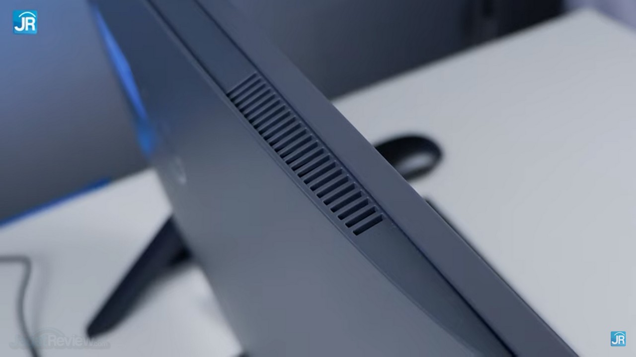 AIO PC ini dilengkapi dua buah Speaker dengan lubang keluaran suara terletak pada area bingkai bawah layar sehingga mengarah langsung ke pengguna.
