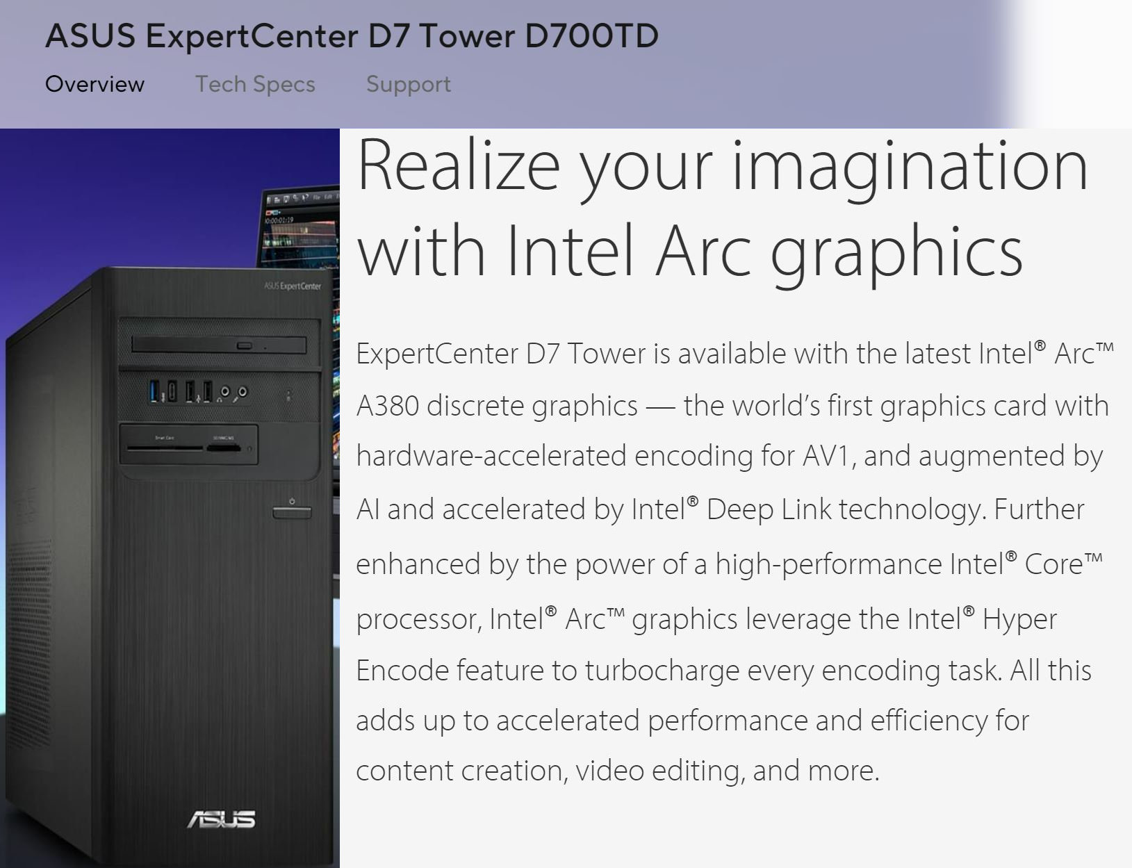 Untuk ASUS, GPU Intel Arc A380 hadir pada perangkat PC ExpertCenter D7 Tower dan juga ROG Strix GT 15. Produk ini telah terpampang di website resmi ASUS.
