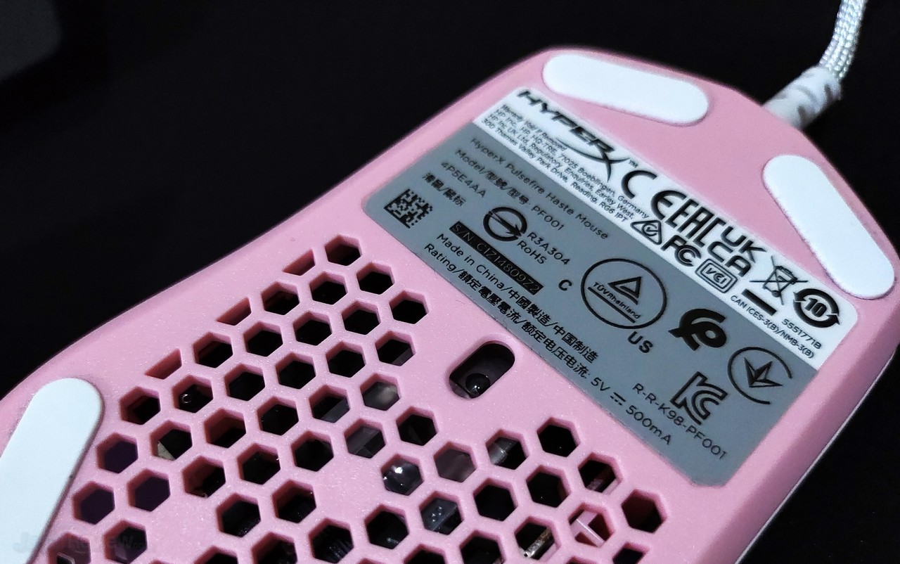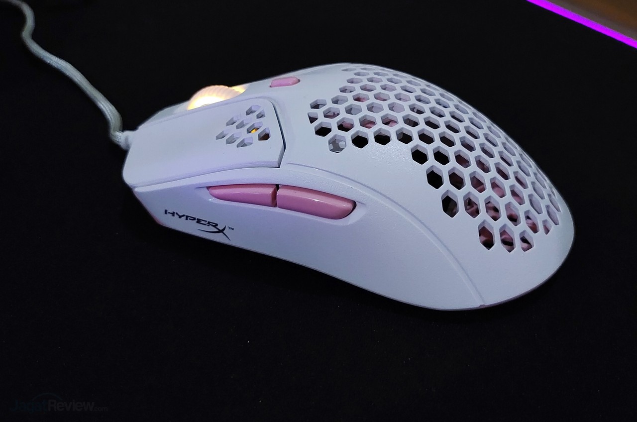 Ergonomi juga menjadi nyaman dengan rongga tersebut. Lubang memberikan sirkulasi udara di telapak tangan pengguna bikin tangan tidak terasa gerah meskipun lama bermain. Varian yang kami uji yaitu dengan warna White-Pink, disamping warna lain yang tersedia yaitu Black dan Red-Black.