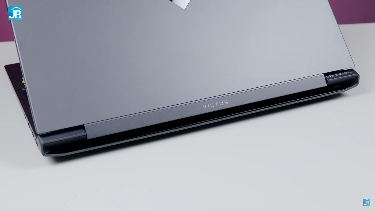Lubang exhaust di bagian belakang yang sangat lebar – dari ujung ke ujung lainnya. Terdapat tulisan “VICTUS” di bagian engsel. Selain itu juga ada logo V di bagian belakang layar.