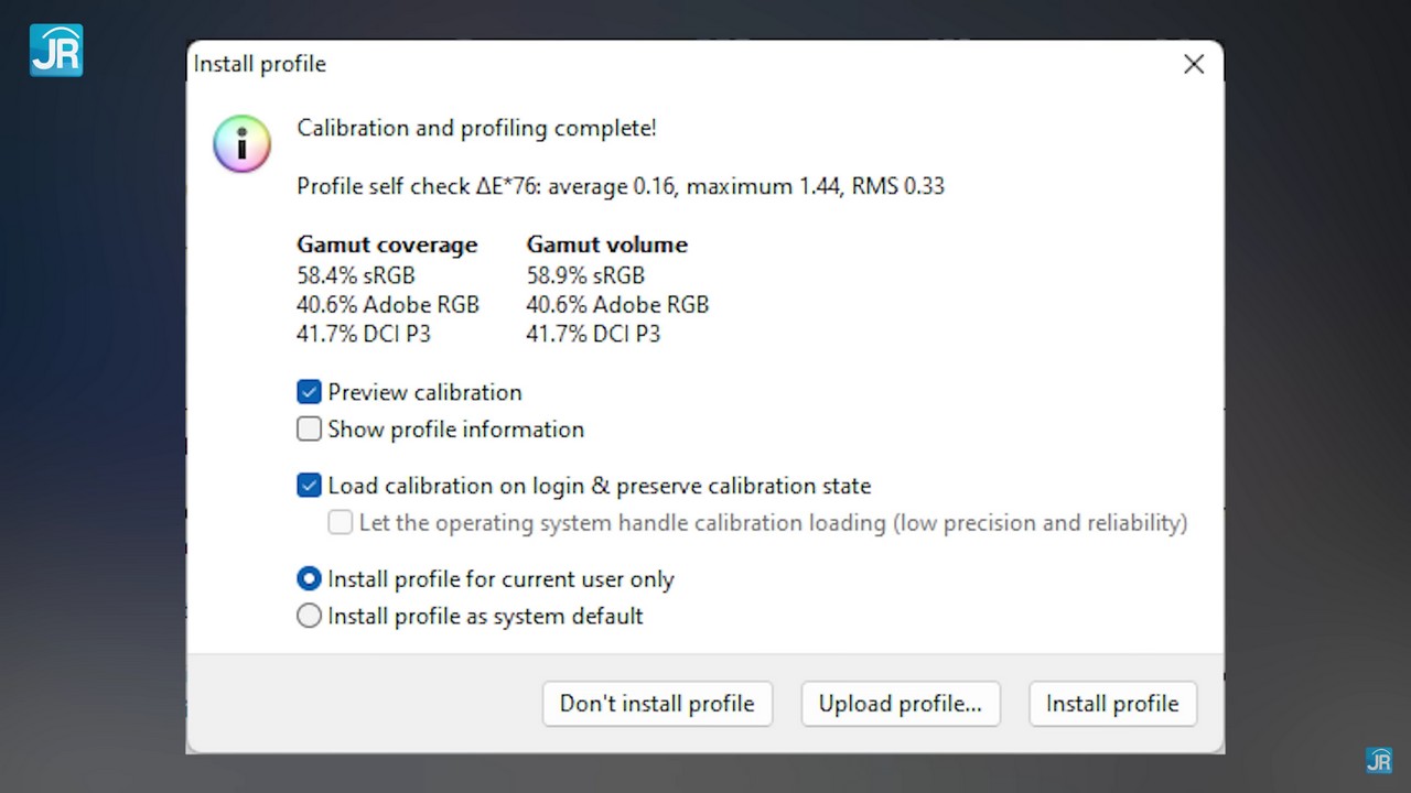 - Gamut Volume dan Coverage ada di kisaran 58% sRGB