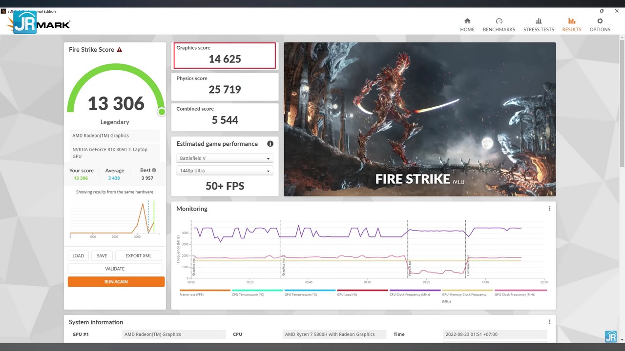 Ini termasuk hasil yang sangat bagus untuk sebuah laptop gaming seperti ini