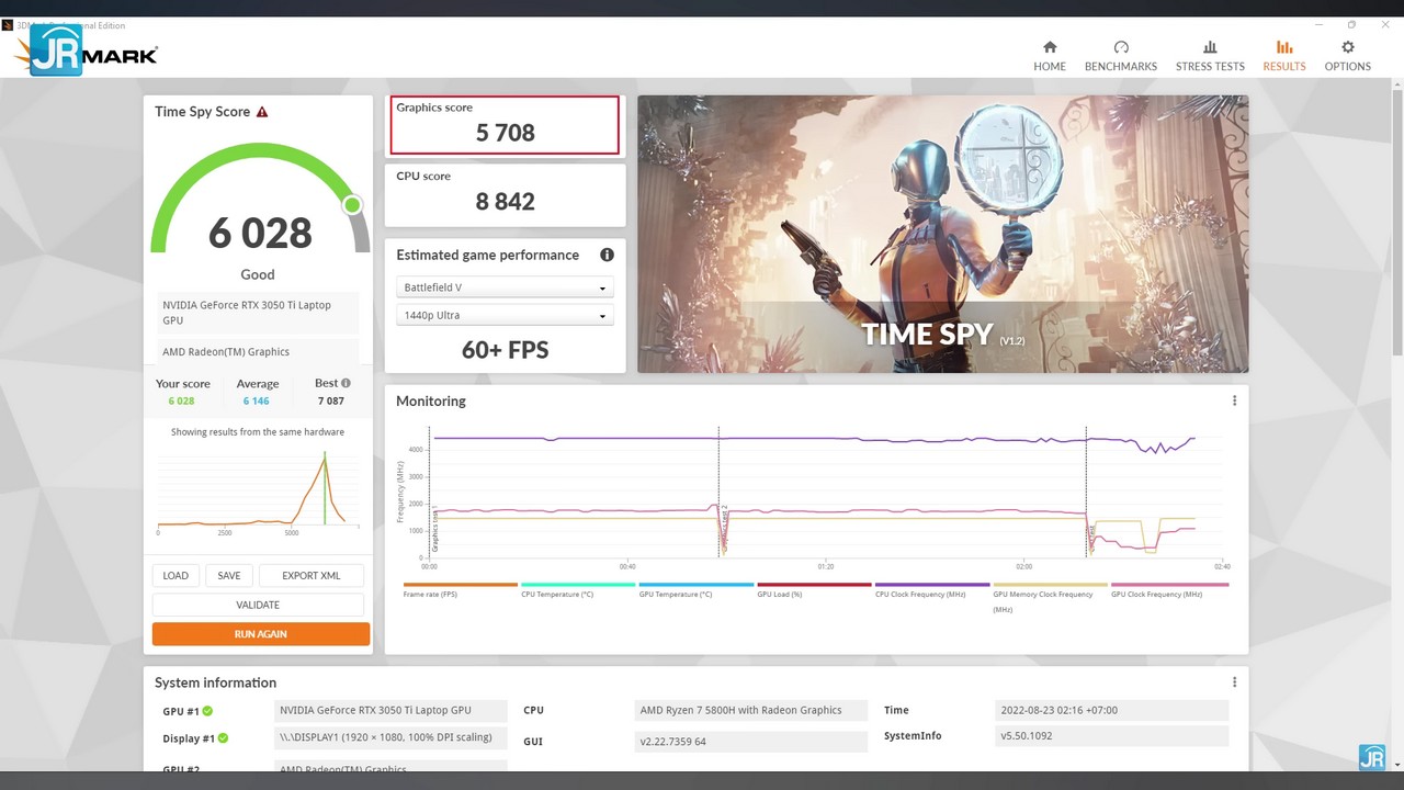 - Time Spy (DirectX 12) – 5708 poin