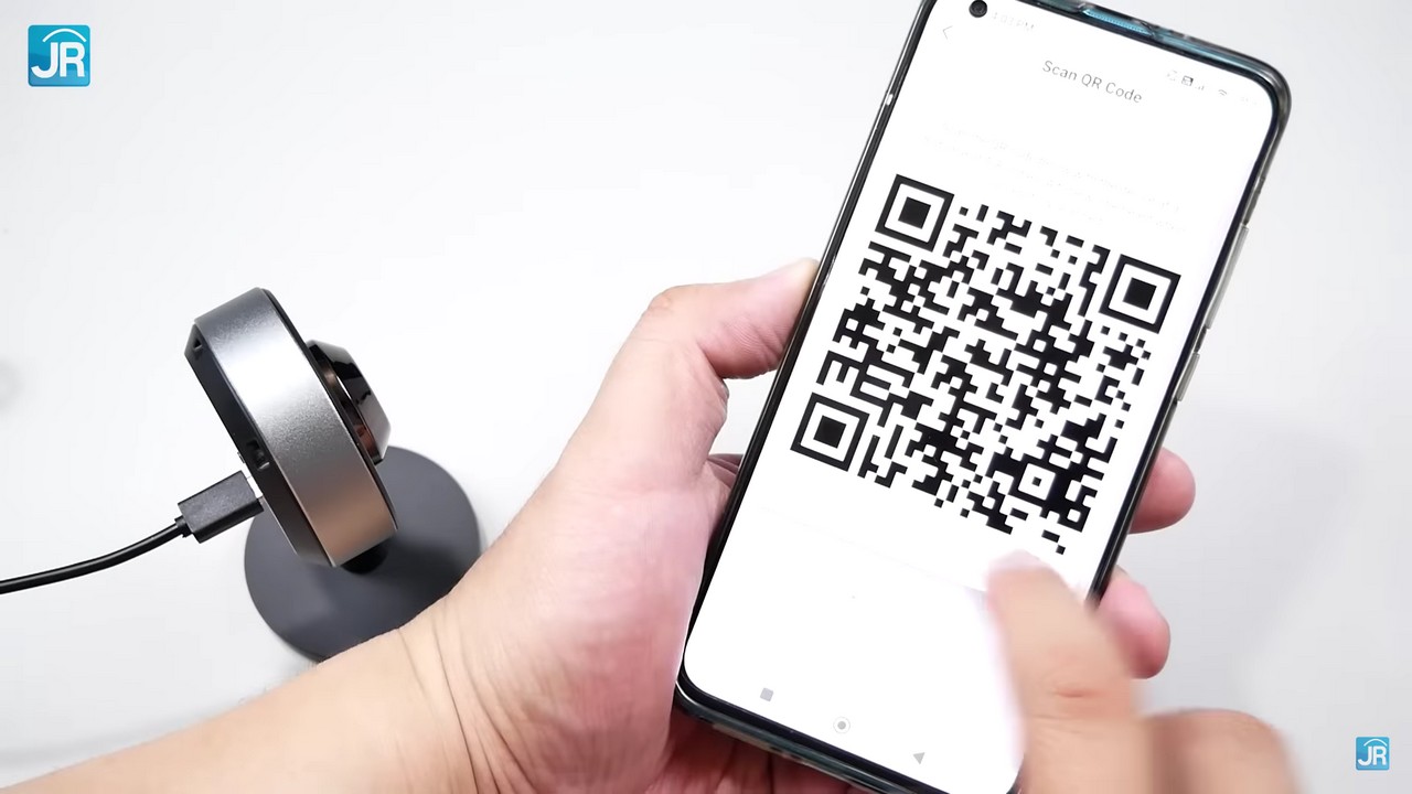 Setelah Wi-Fi dipilih dan password untuk Wi-Fi tersebut dimasukkan, aplikasi akan menampilkan QR Code. Kita akan diminta menunjukkan QR Code tersebut ke kamera.