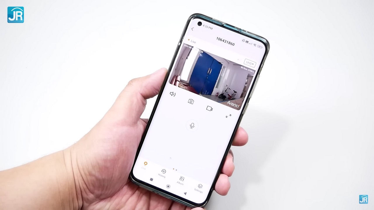 Untuk melakukan pemantauan dengan kamera, di aplikasi cukup tekan entri kamera tersebut yang ada di tampilan utama aplikasi. Kita akan bisa melihat live view yang ditangkap oleh kamera.