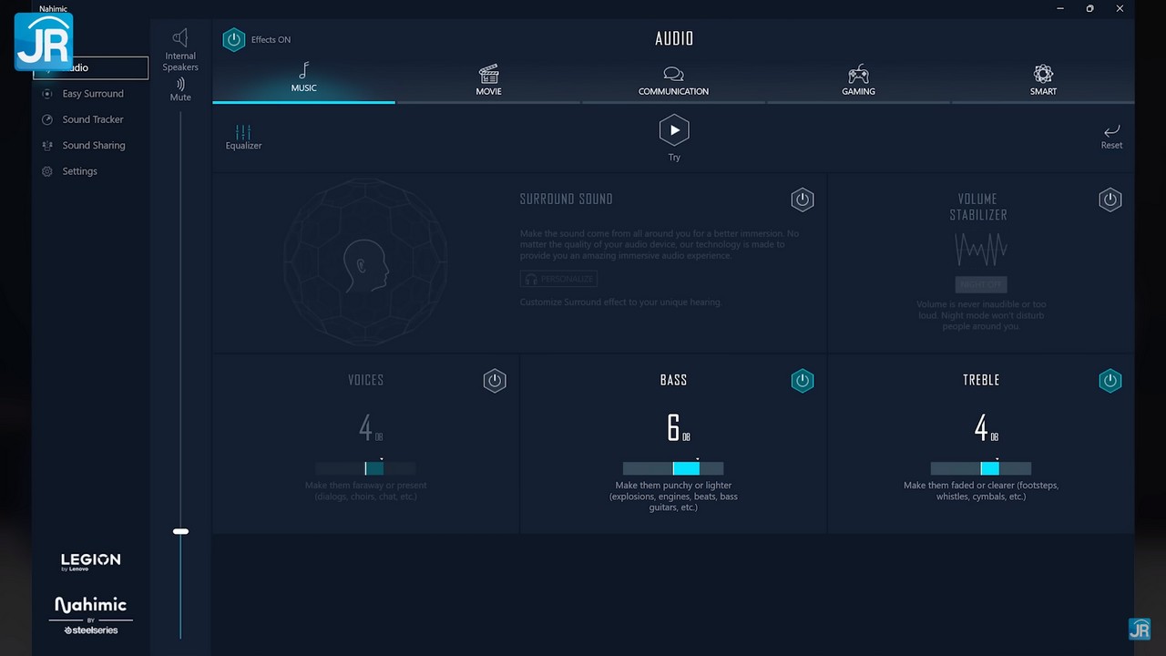 Juga didukung fitur Smart Amplifier dengan software Nahimic Audio yang mampu mengubah preset audio dan equalizer.