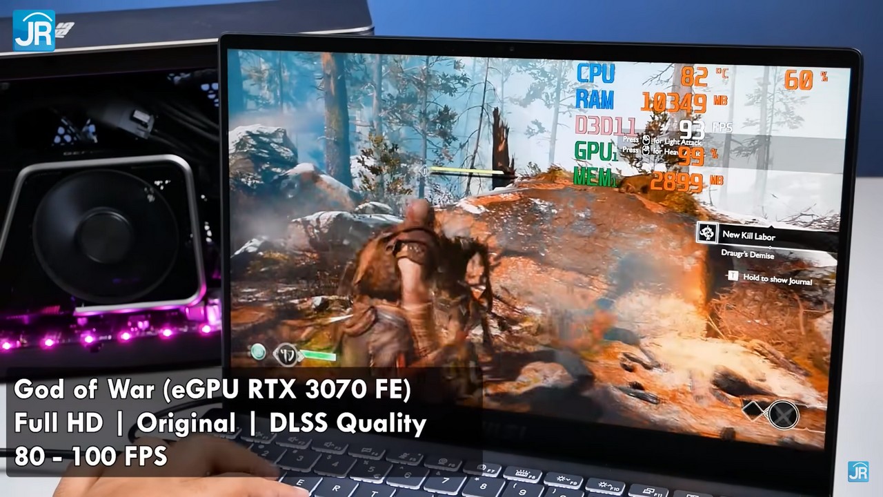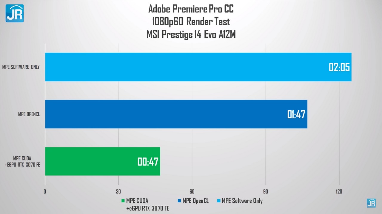 - Dengan eGPU (RTX 3070 FE) – 1 menit 28 detik