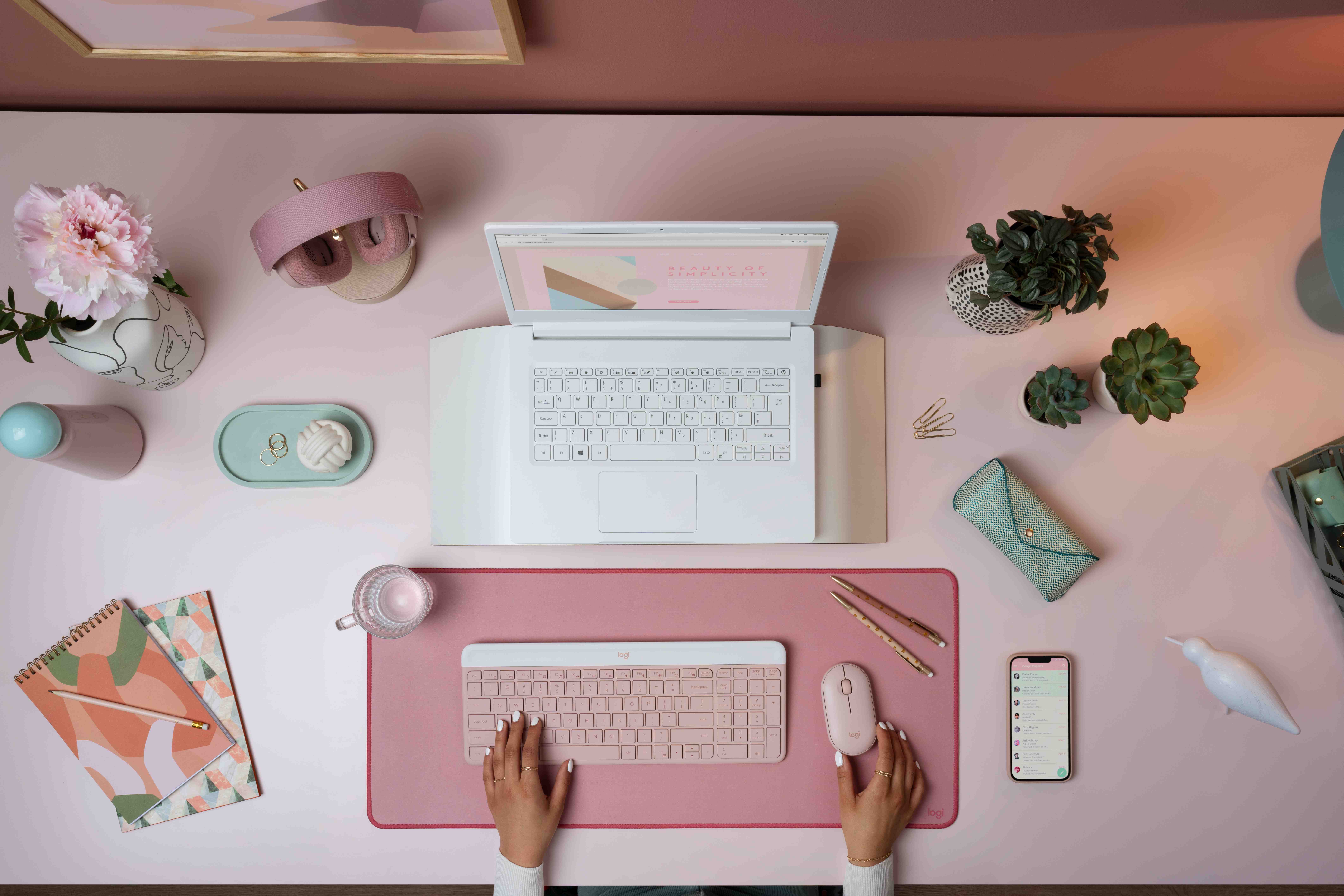 Logitech menghadirkan varian warna baru yaitu Rose alias Pink untuk Logitech K580 Slim Multi-Device Wireless Keyboard dan MK470 Slim Keyboard Mouse Combo. Warna baru tersebut akan melengkapi dua warna sebelumnya yakni Graphite dan Off-White.