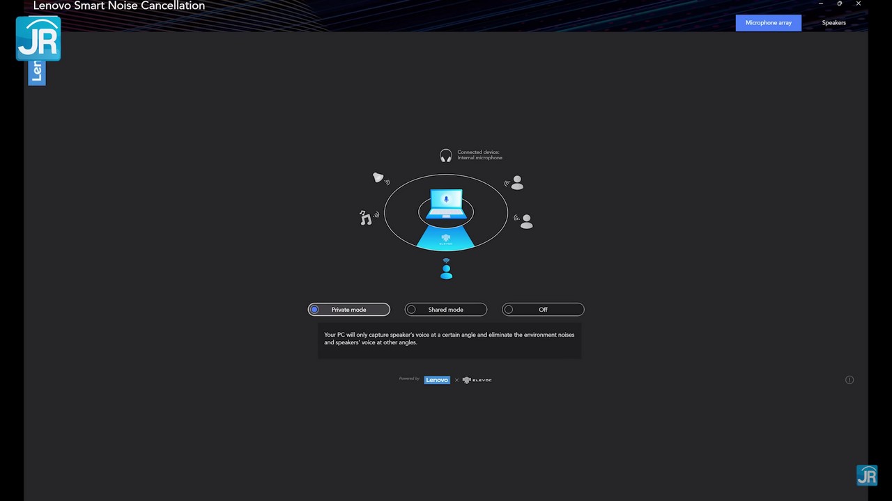 Kameranya juga dilengkapi dengan Infra-Red yang mendukung fitur Windows Hello. Untuk mikrofonnya telah dilengkapi dengan fitur Lenovo Smart Noise Cancellation.