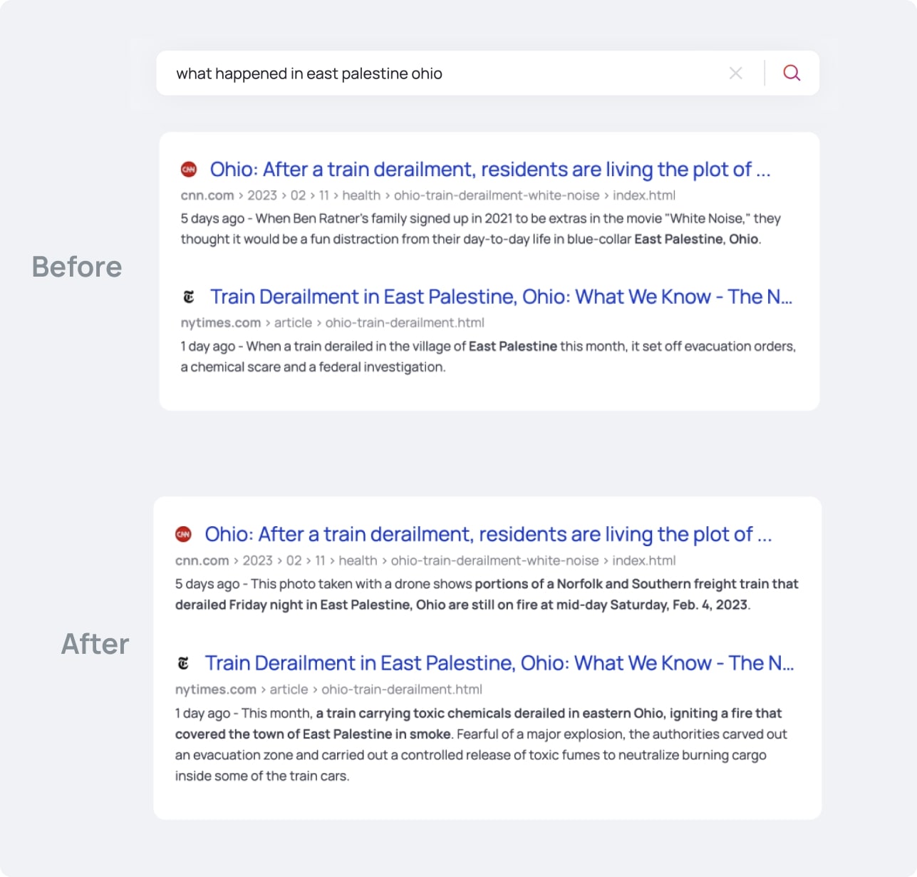 Selain fitur Summarizer tadi, Brave Search sekarang juga akan menyoroti kalimat relevan yang tercantum pada artikel berita di daftar hasil pencarian. Sebelumnya, Brave Search hanya menyoroti kata kunci yang ada pada deskripsi halaman artikel tersebut.