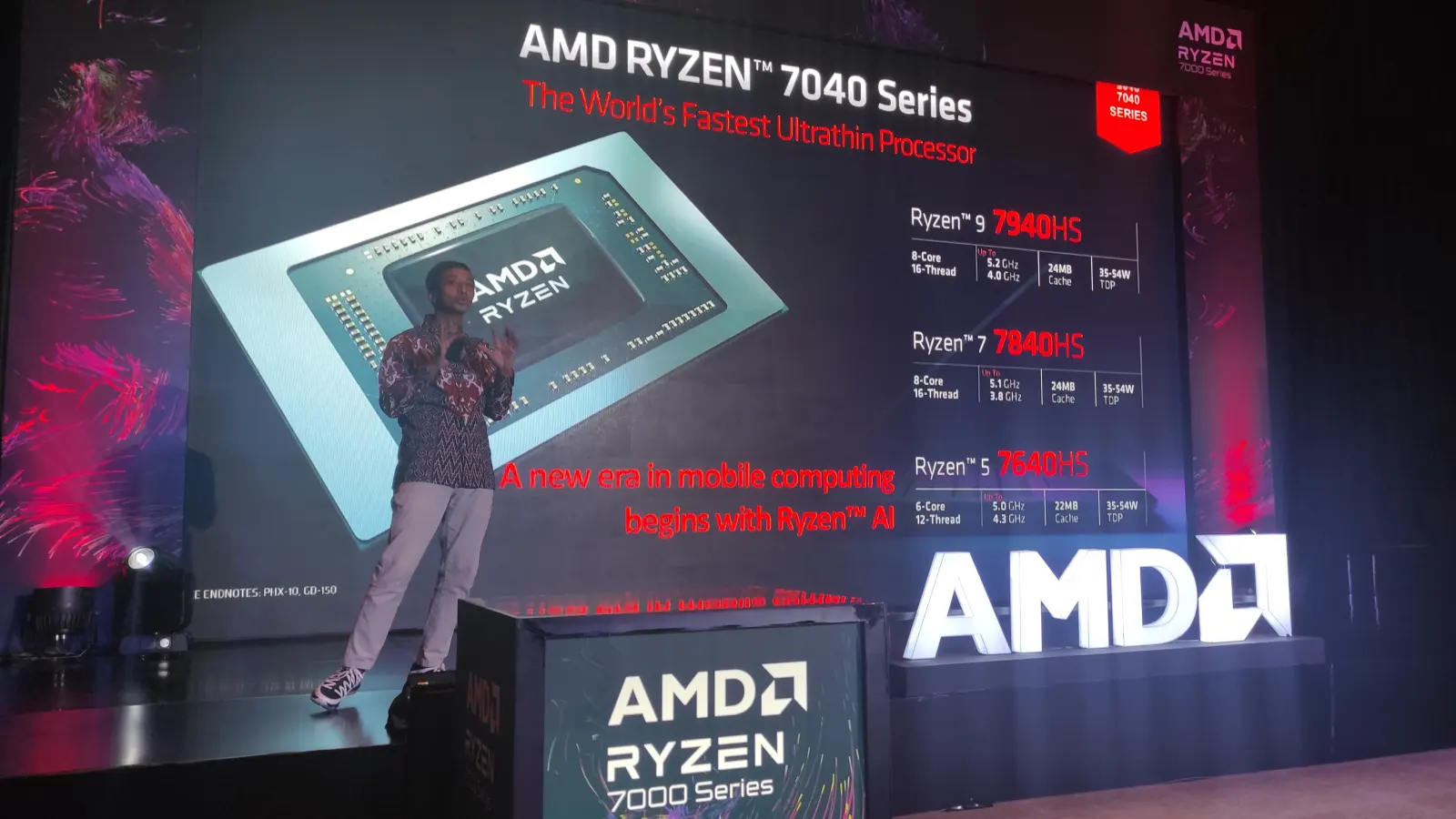 Ryzen 7040HS ini ditujukan untuk laptop dengan performa tinggi tapi dengan form factor tipis dan ringan. Prosesor yang juga sudah terintegrasi dengan kartu grafis AMD RDNA 3 ini dilengkapi hingga 8 core berbasis arsitektur Zen 4 dan dibangun pada fabrikasi 4nm.